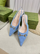 GC Horsebit Slingback Pump 10mm Blue Canvas Sheepskin 294542