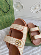 GC sandal with Double G Brown mix Beige Canvas Sheepskin 291016