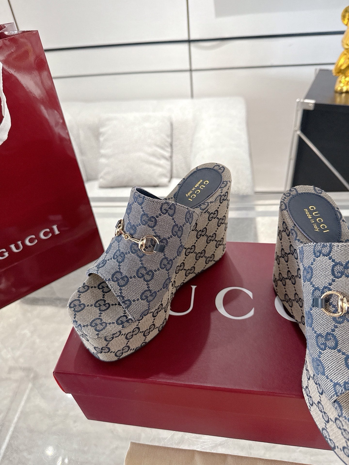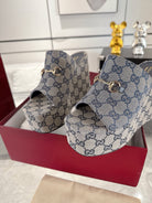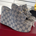 GC Wedge With Horsebit Sandal Gray Blue Canvas 292420