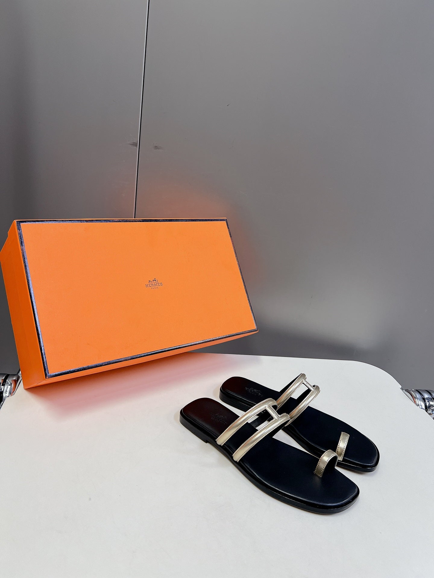 Georgia Sandals Gold Black Calfskin