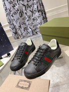GG ACE GG SUPREME TRAINER BLACK CALFSKIN WITH PATTERNS