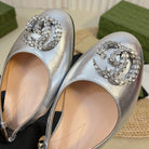 GG Double G patent leather slingback ballet flats Sliver