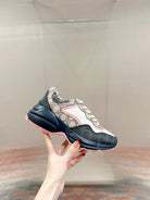 GG RHYTON TRAINER CHARCOAL AND WHITE CALFSKIN