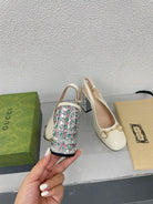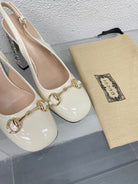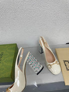 GG WOMEN'S HORSEBIT SLINGBACK 95MM IN WHITE CALFSKIN WITH RHINSTONES