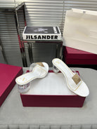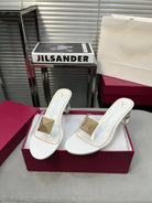 Heeled Sandals 6cm with Crystal Square Buckle White