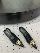 HEELED SLINGBACK 45 MM IN BLACK SMOOTH LAMBSKIN GOLD HARDWARE