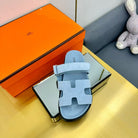 Hermes Chypre Sandal Blue Suede Leather
