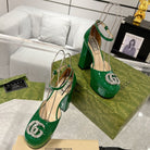 HIGH SANDAL SQUARE HEEL 12 CM IN DARK GREEN CALFSKIN