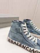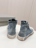 HIGH-TOP SNEAKERS IN BLUE DENIM LOGO PRINT