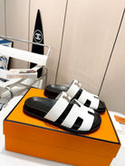 HM CHYPRE SANDAL WHITE WITH H-BUCKLE CALFSKIN