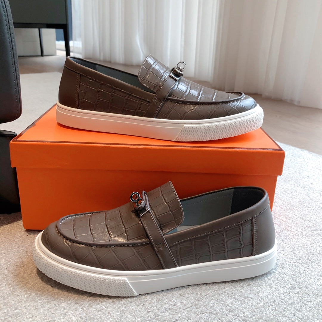 HM GAME SLIP-ON CROCODILE MOTIF SNEAKER BROWN CALFSKIN