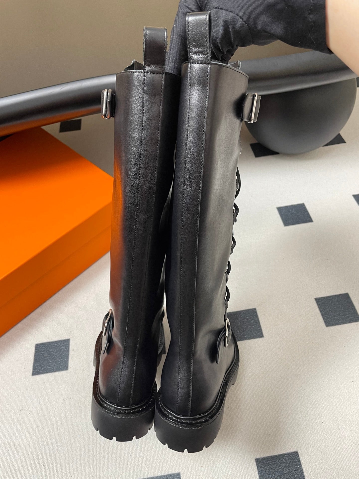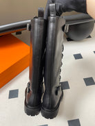 HM lace up boots belt buckle black leather