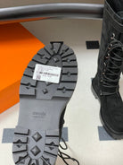 HM lace up boots belt buckle black suede