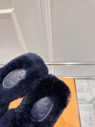 HM Oran slippers sliver buckle navy blue wool