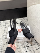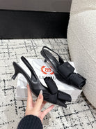 KNIFE CHEMISE 45MM SLINGBACK IN BLACK COTTON AND CALFSKIN