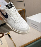 LV AIR FORCE 1 GLOSSY WHITE CALFSKIN WITH BLUE MONOGRAM LOGO