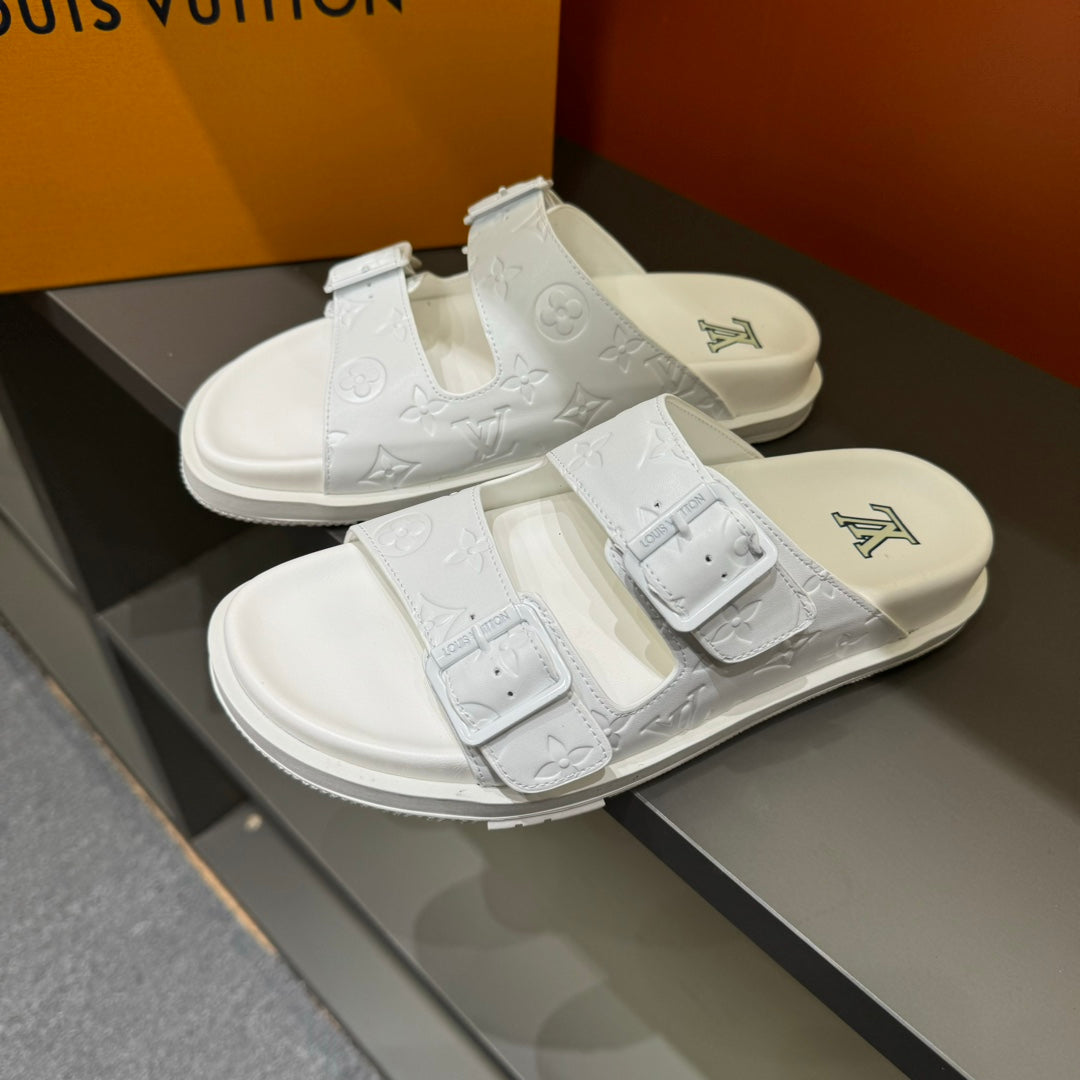 LV DAD SANDAL WHITE EMBOSSED CALFSKIN