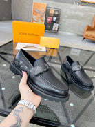 LV LOAFERS BLACK CALFSKIN WITH MONOGRAM STRAP