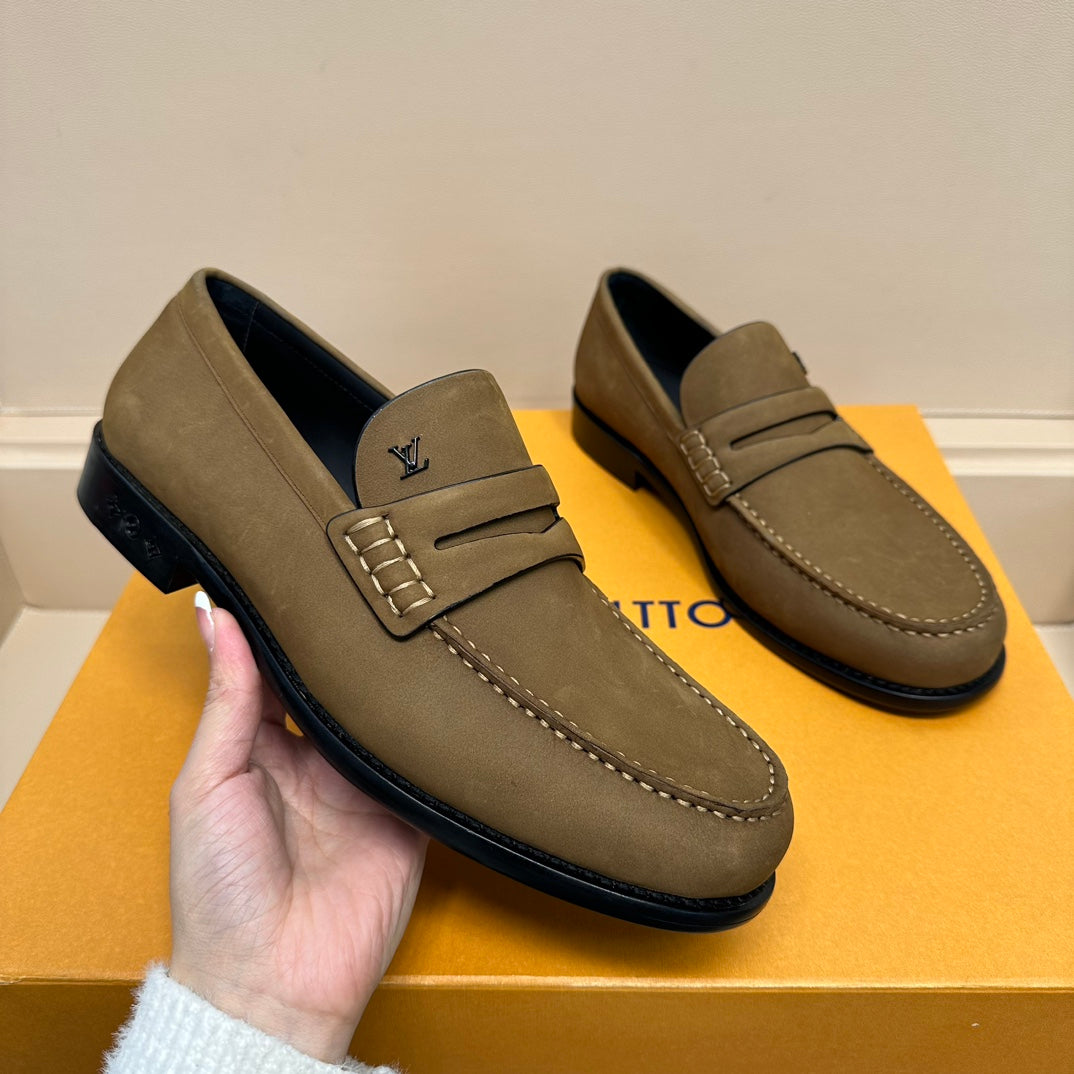 LV MAJOR LOAFERS IN PEANUT BROWN SUEDE CALFSKIN