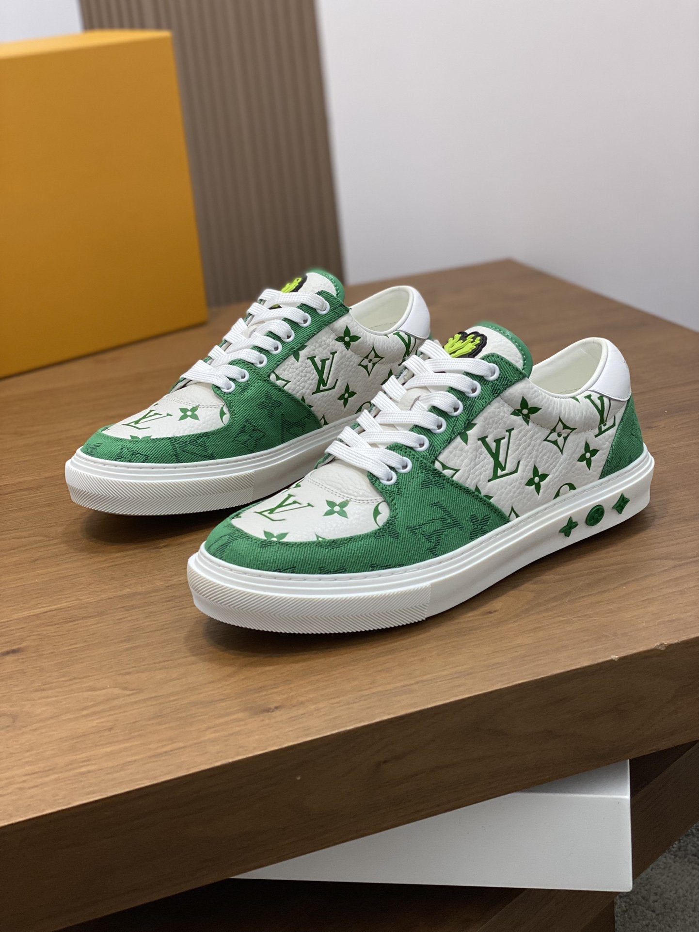 LV MONOGRAM GREEN AND WHITE SNEAKERS