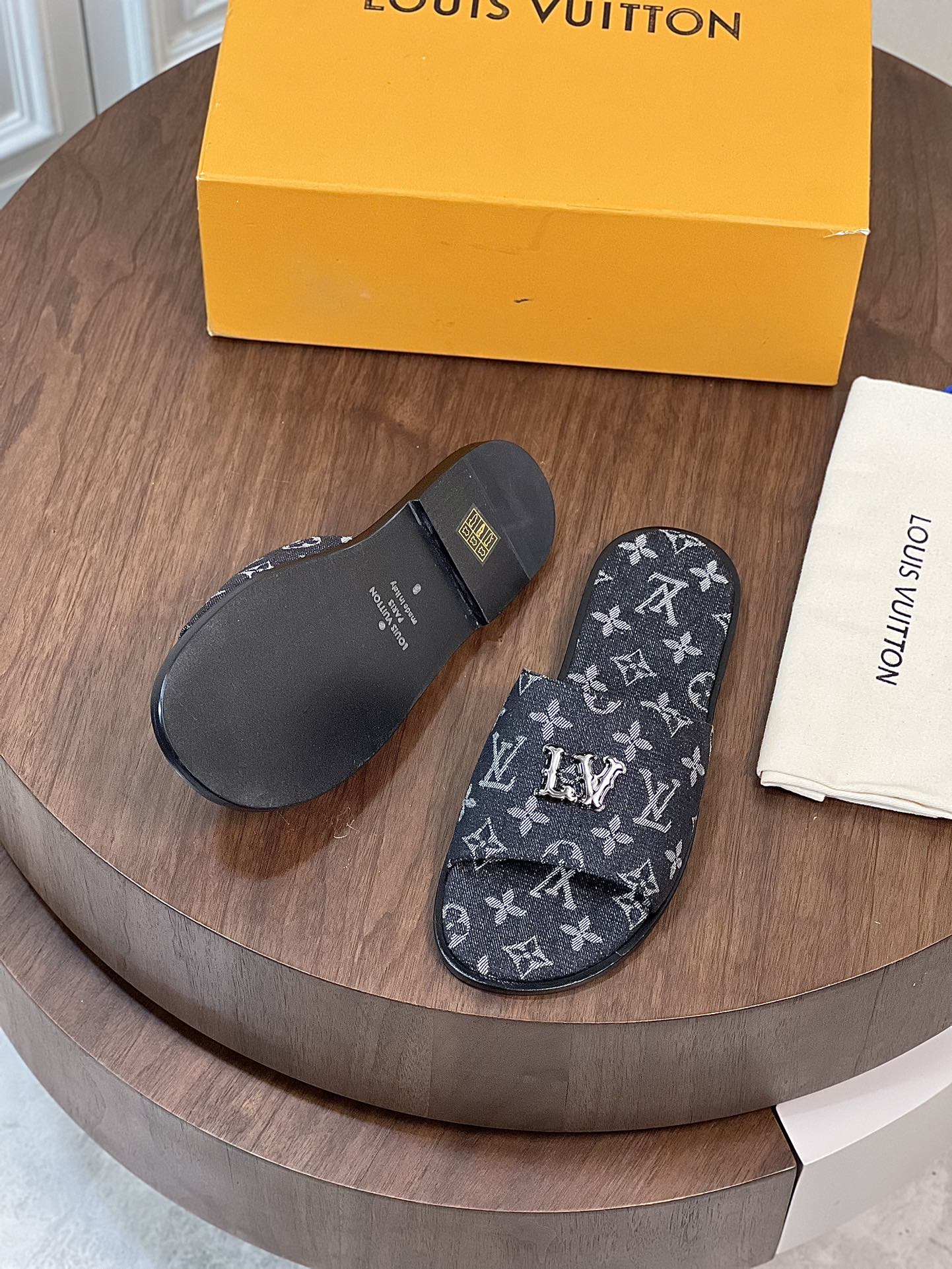 LV MULE IN BLACK MONOGRAM DENIM