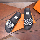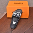 LV SLIPPERS IN BLACK MIX WHITE DAMIER CALFSKIN