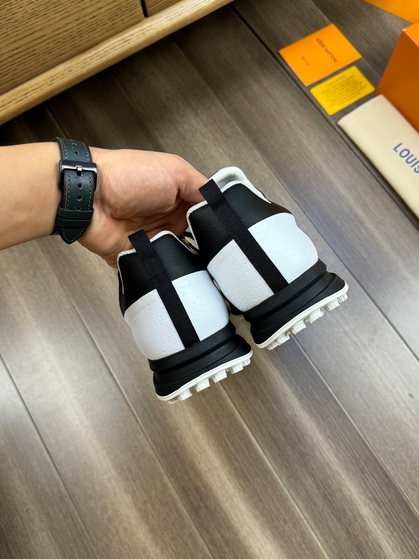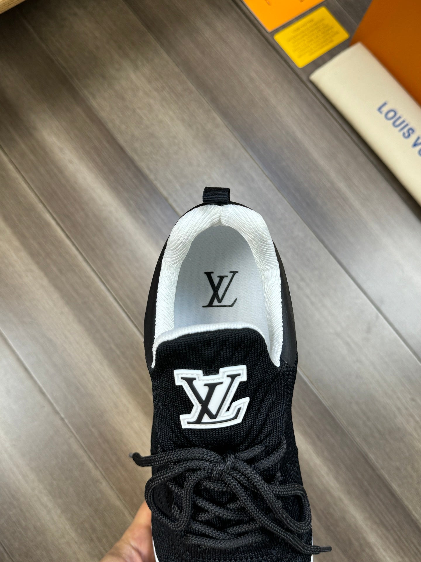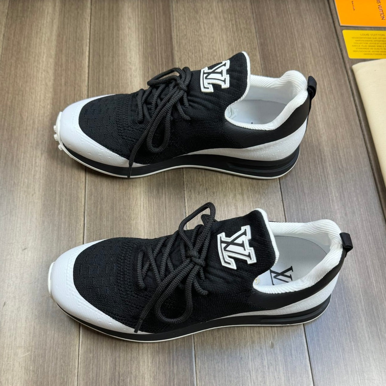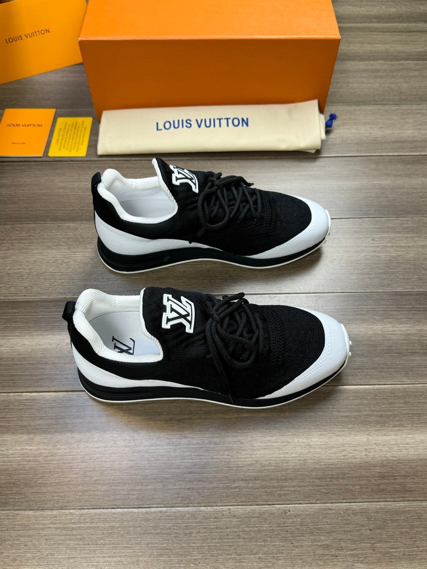 LV SNEAKERS IN BLACK MESH BREATHABLE FABRIC AND WHITE CALFSKIN