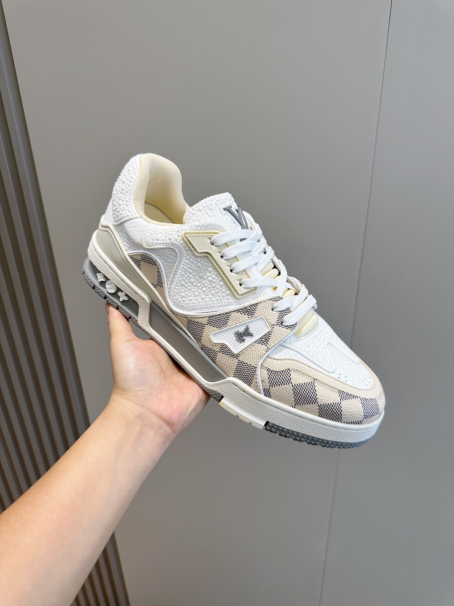 LV TRAINER BEIGE CREAM DAMIER MIX WHITE GRAINED CALFSKIN