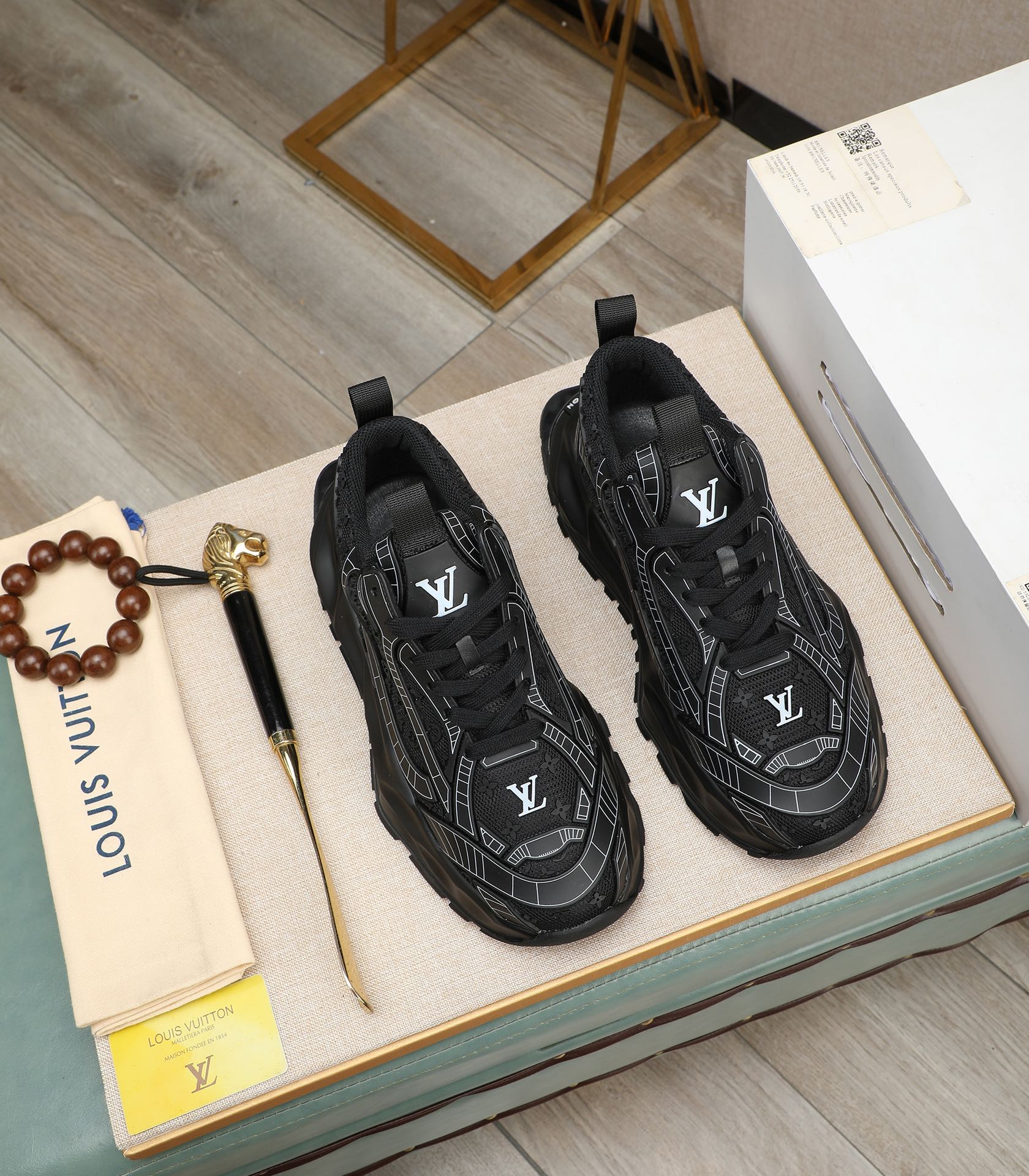 LV TRAINER IN BLACK CALFSKIN AND BREATHABLE MESH