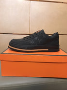 LV TRAINER IN EMBOSSED BLACK SUEDE