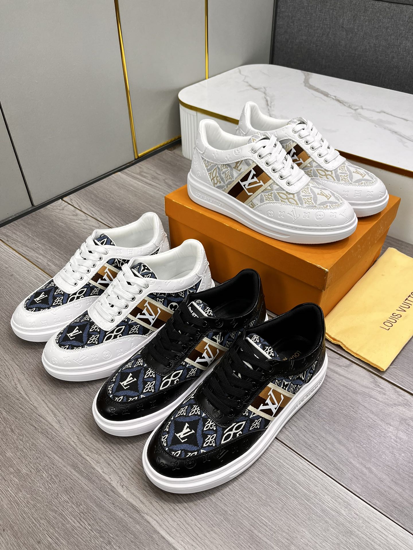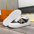 LV TRAINER IN WHITE EMBOSSED CALFSKIN AND MONOGRAM FABRIC