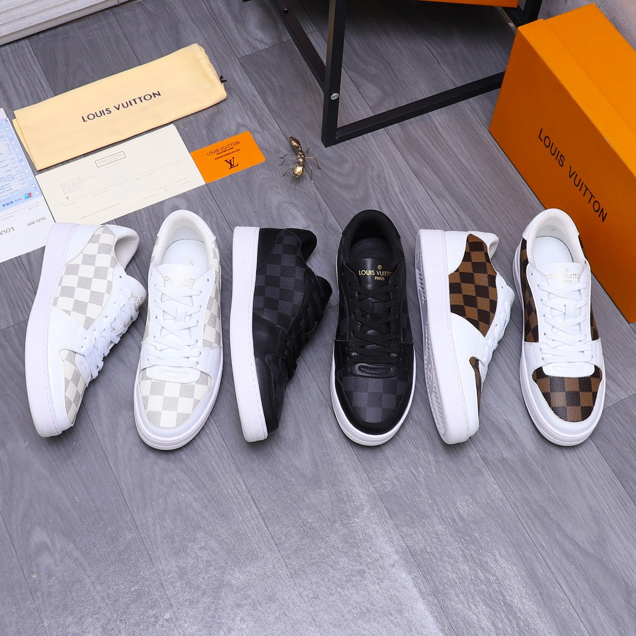 • Material: Selected calfskin with classic checkered pattern on the upper, breathable mesh lining, rubber sole.