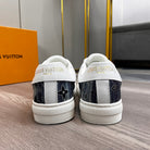 LV TRAINER SNEAKER WHITE CALFSKIN AND BLUE DENIM
