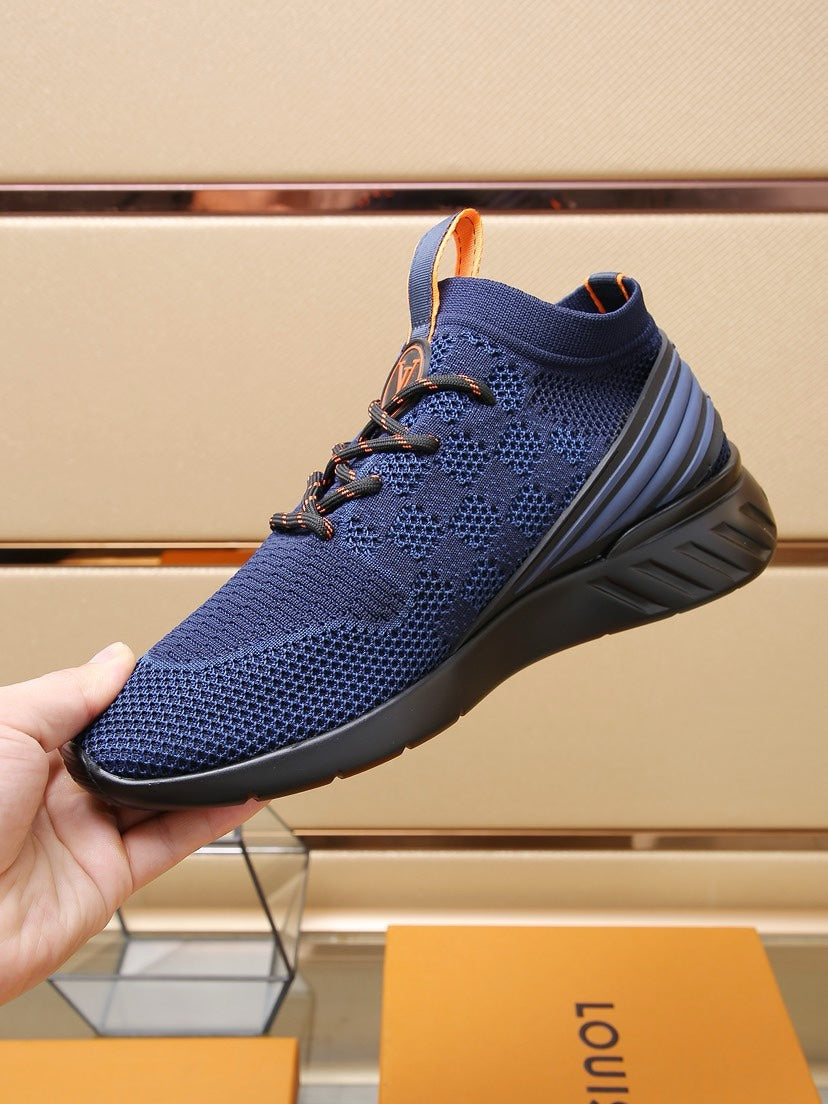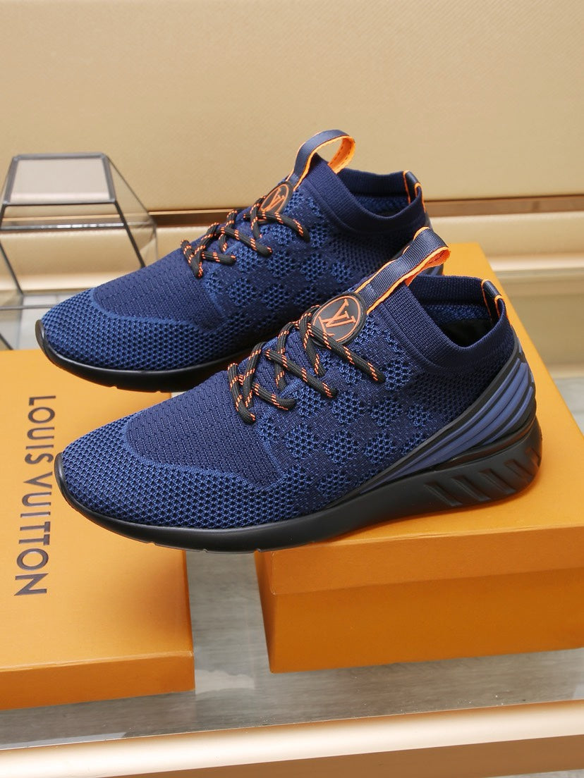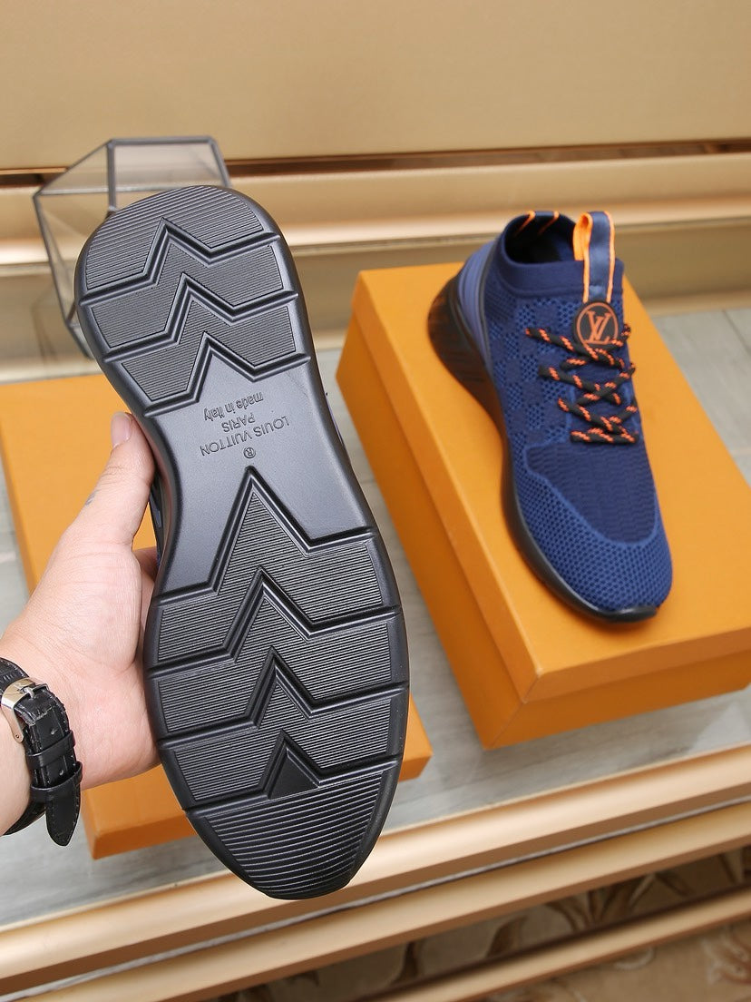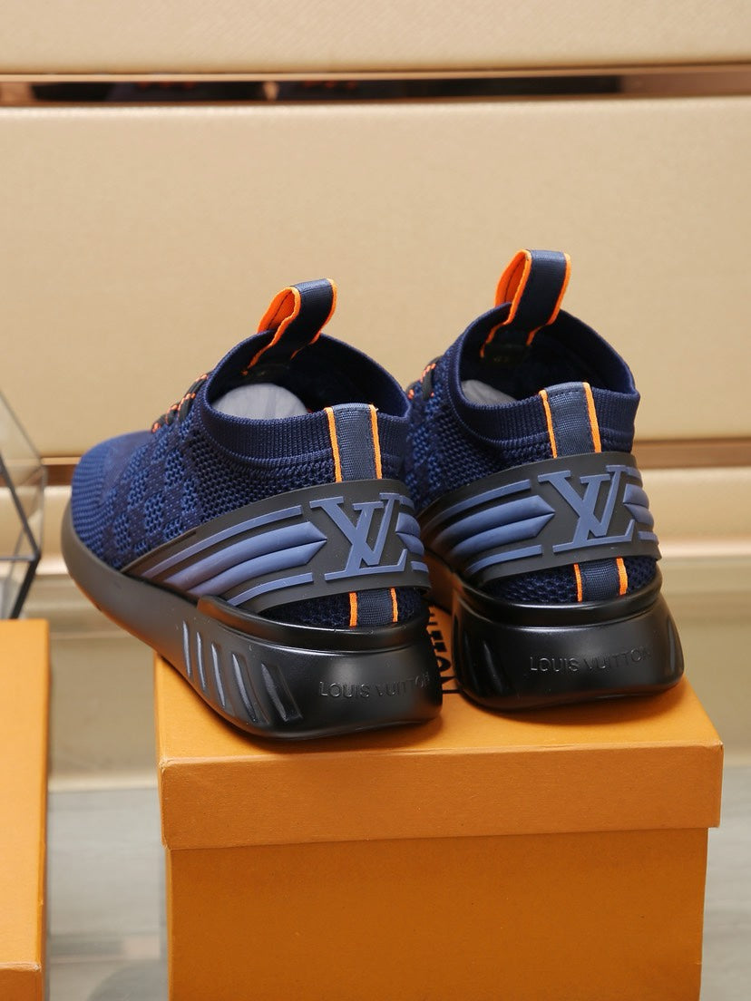 LV TRAINERS DAMIER NAVY BLUE MESH FABRIC
