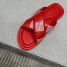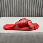 • Premium LV men's slippers, synchronizing with the 2024 early autumn runway collection. The slippers feature a high-quality fabric upper and an original, exclusive comfort sole, ensuring exceptional comfort. These are original factory-followed products.