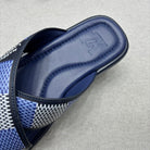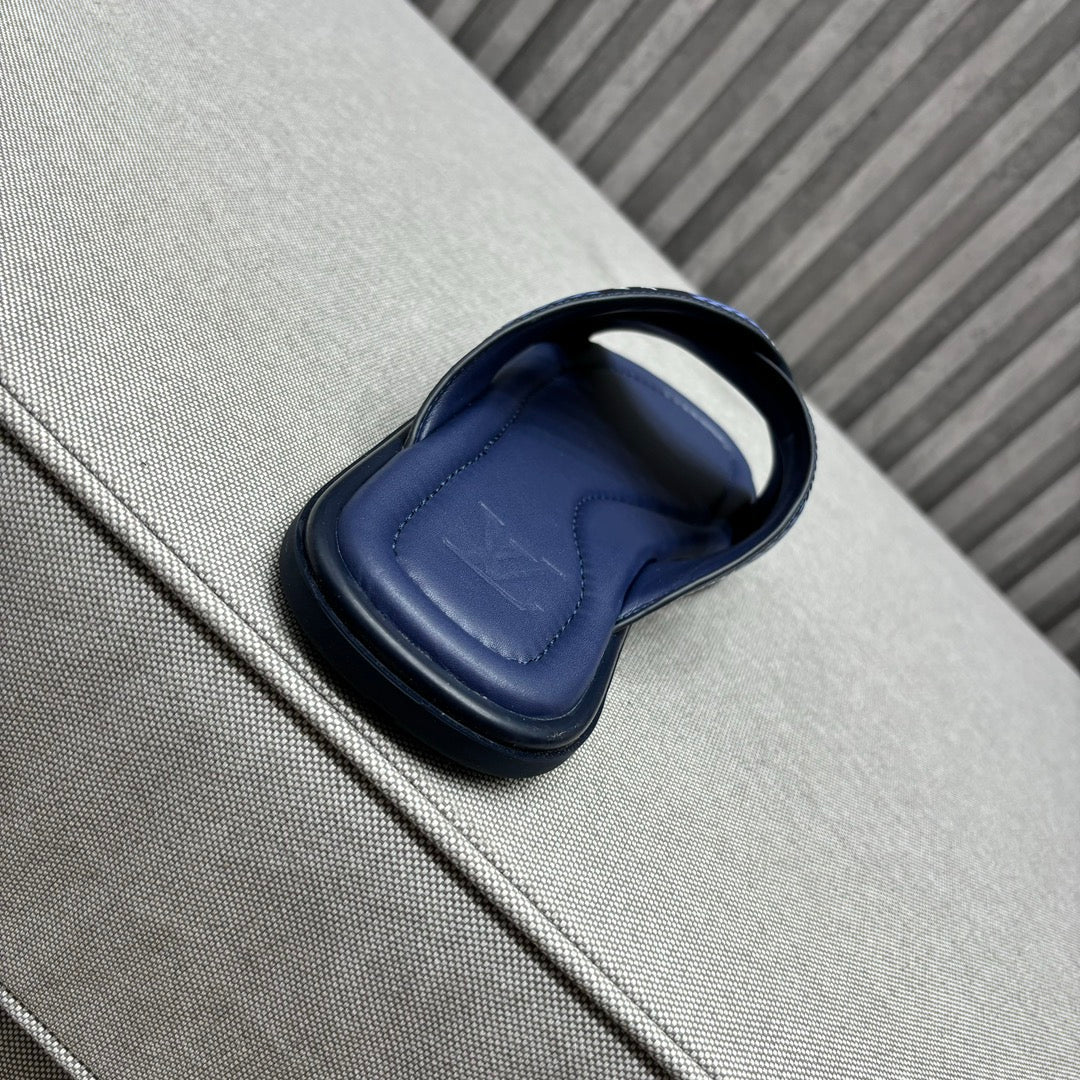 • Premium LV men's slippers, synchronizing with the 2024 early autumn runway collection. The slippers feature a high-quality fabric upper and an original, exclusive comfort sole, ensuring exceptional comfort. These are original factory-followed products.
