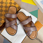 • Premium LV men's slippers, synchronizing with the 2024 early autumn runway collection. The slippers feature a high-quality fabric upper and an original, exclusive comfort sole, ensuring exceptional comfort. These are original factory-followed products.