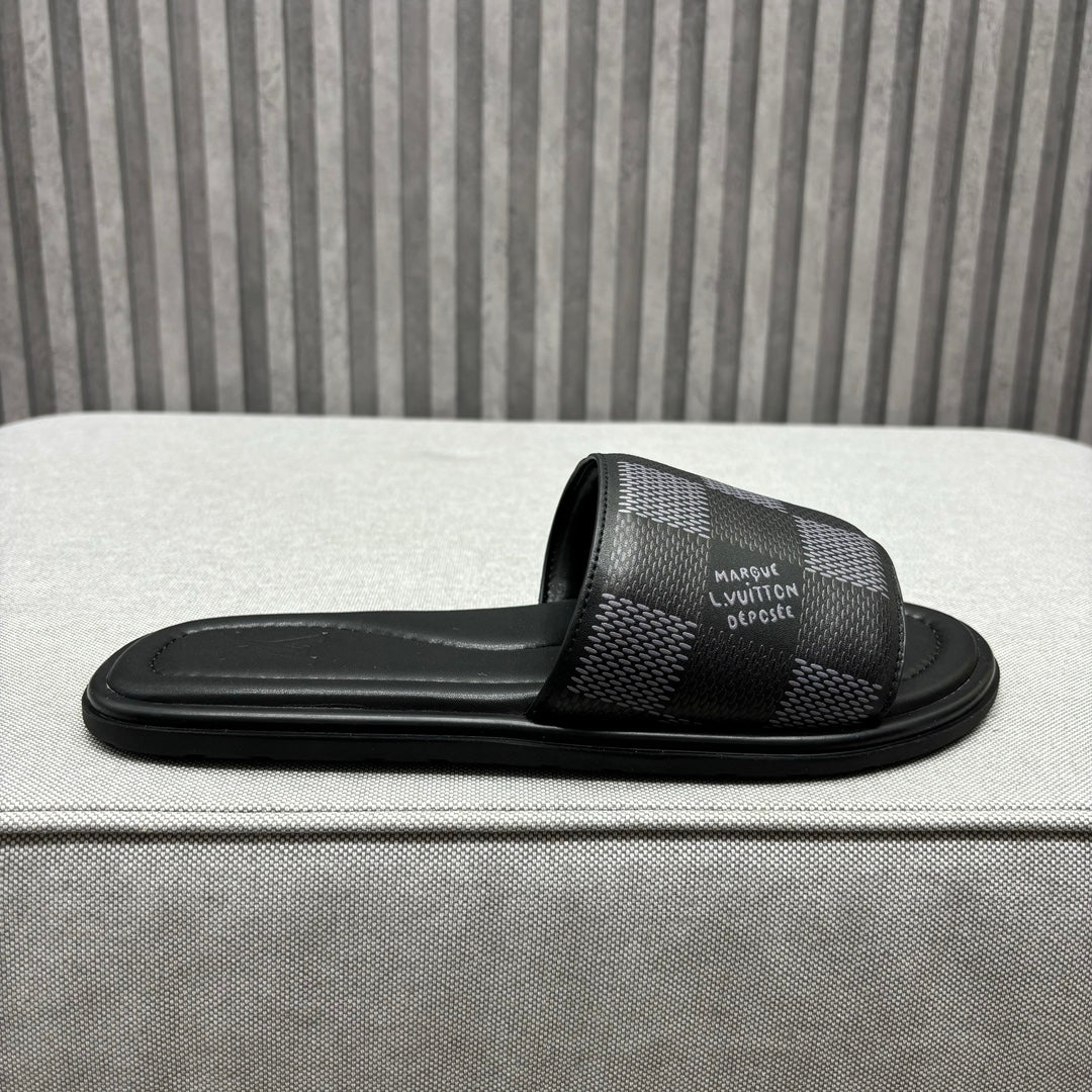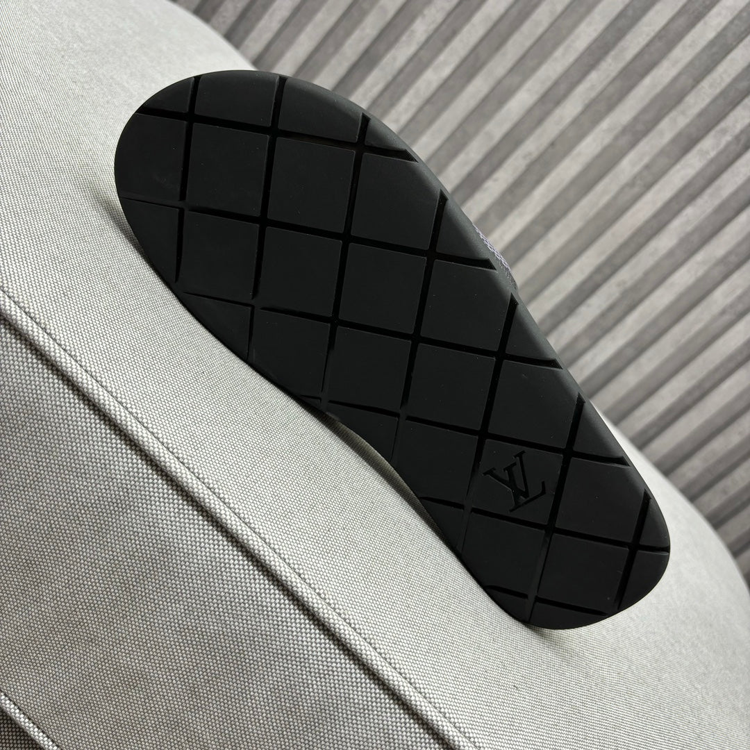 • Premium LV men's slippers, synchronizing with the 2024 early autumn runway collection. The slippers feature a high-quality fabric upper and an original, exclusive comfort sole, ensuring exceptional comfort. These are original factory-followed products.