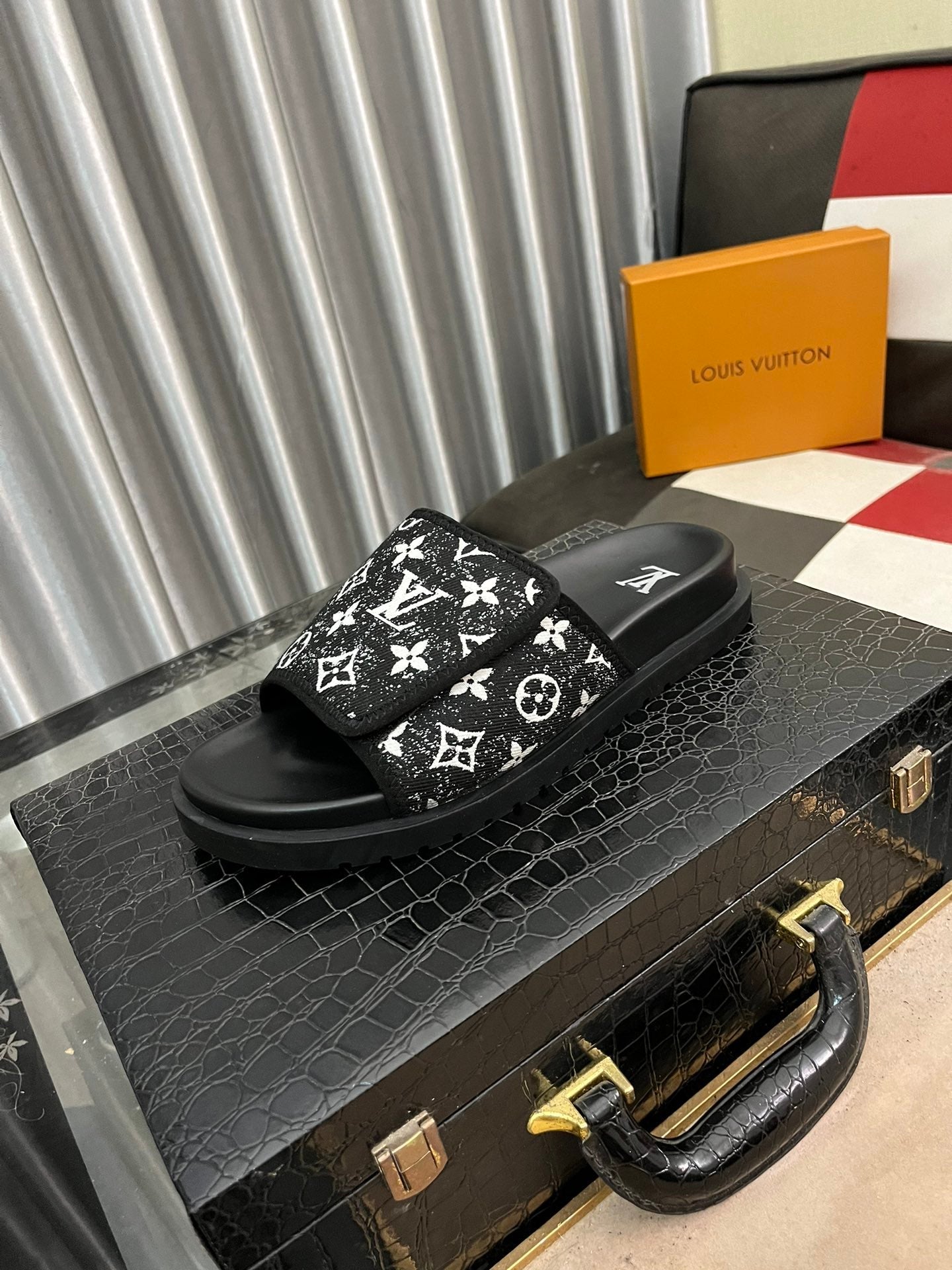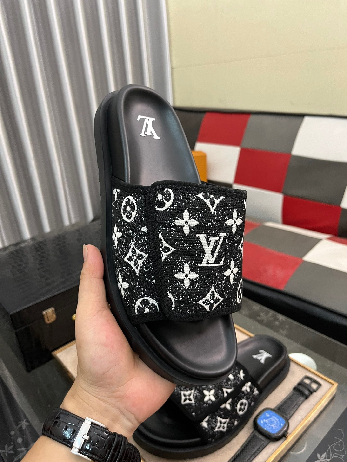 MIAMI MULE IN BLACK MIX WHITE MONOGRAM JACQUARD