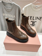 Miu Ankle Boots Coffee Brown Polished Calfskin