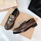Miu Loafers Chestnut Brown Calfskin