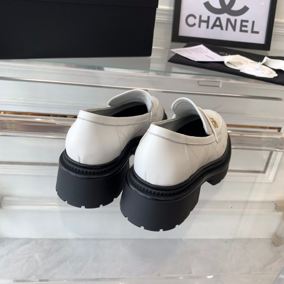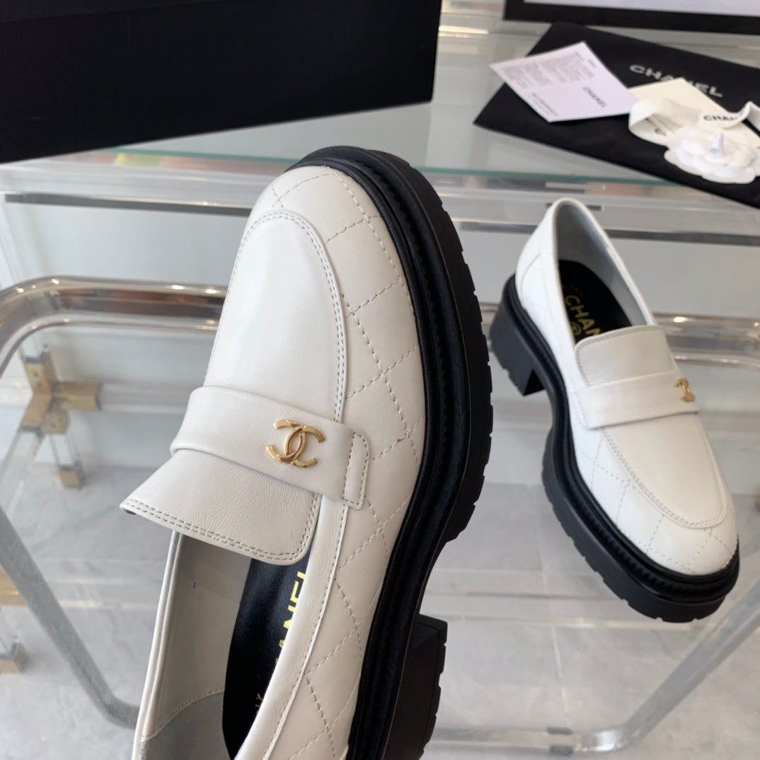 moccasins white black quilted calfskin