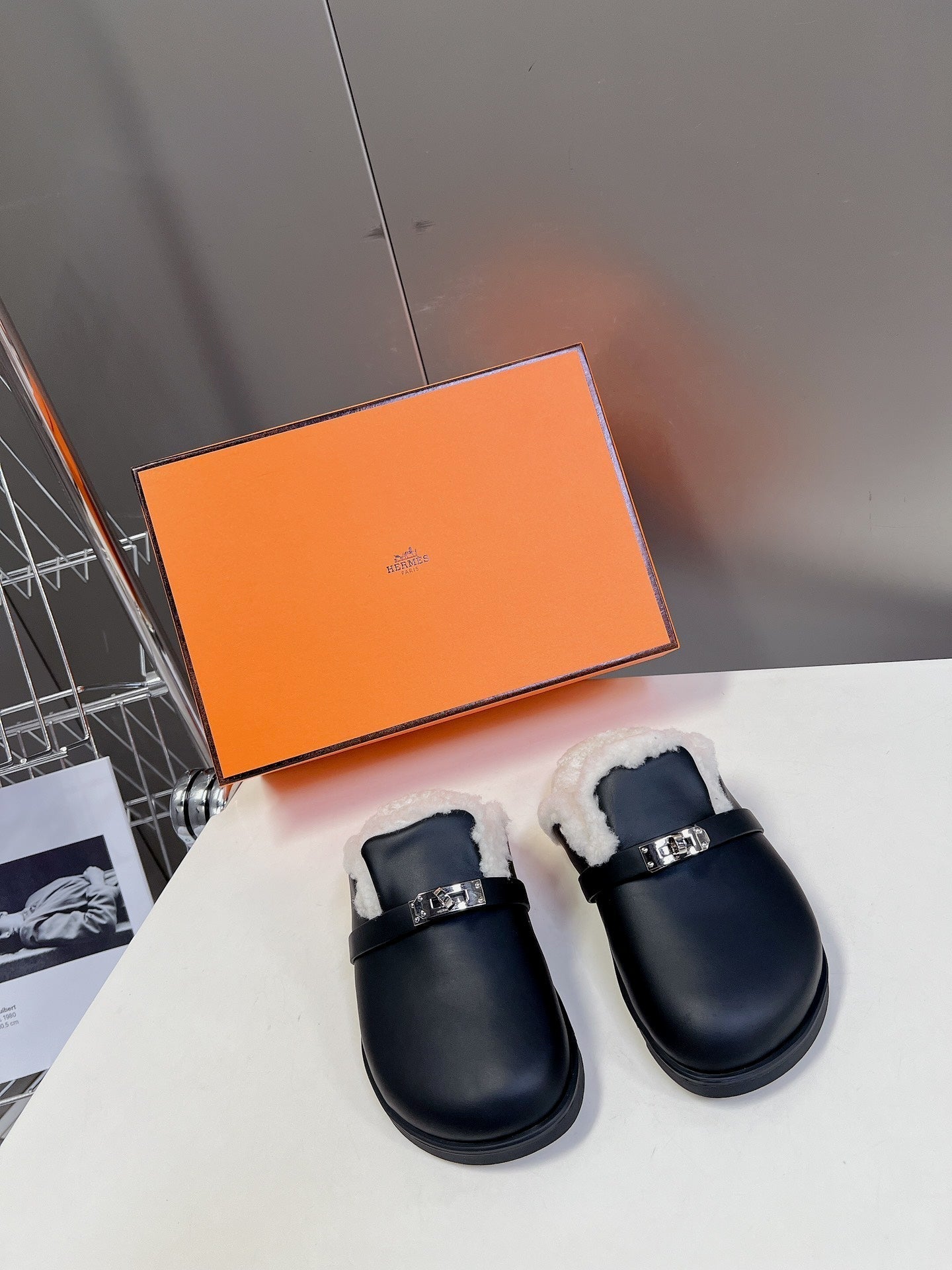 OZ Mule Black Calfskin White Shearling