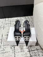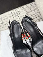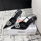 POINTED HIGH SLINGBACK IN BLACK PATENT CALFSKIN WITH CRYSTAL BUCKLE