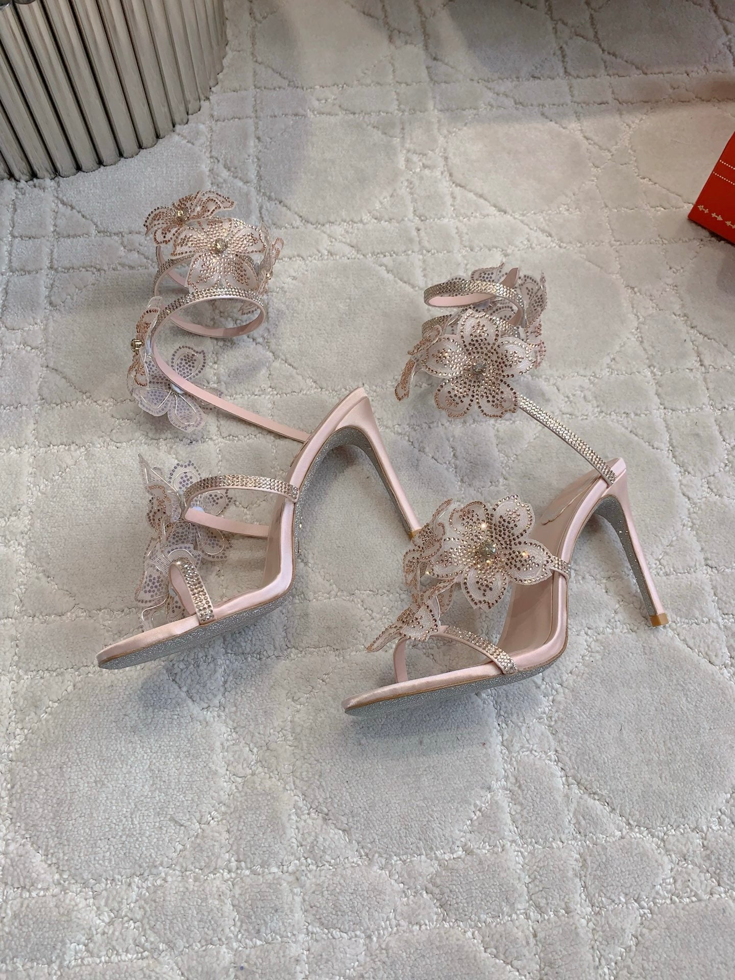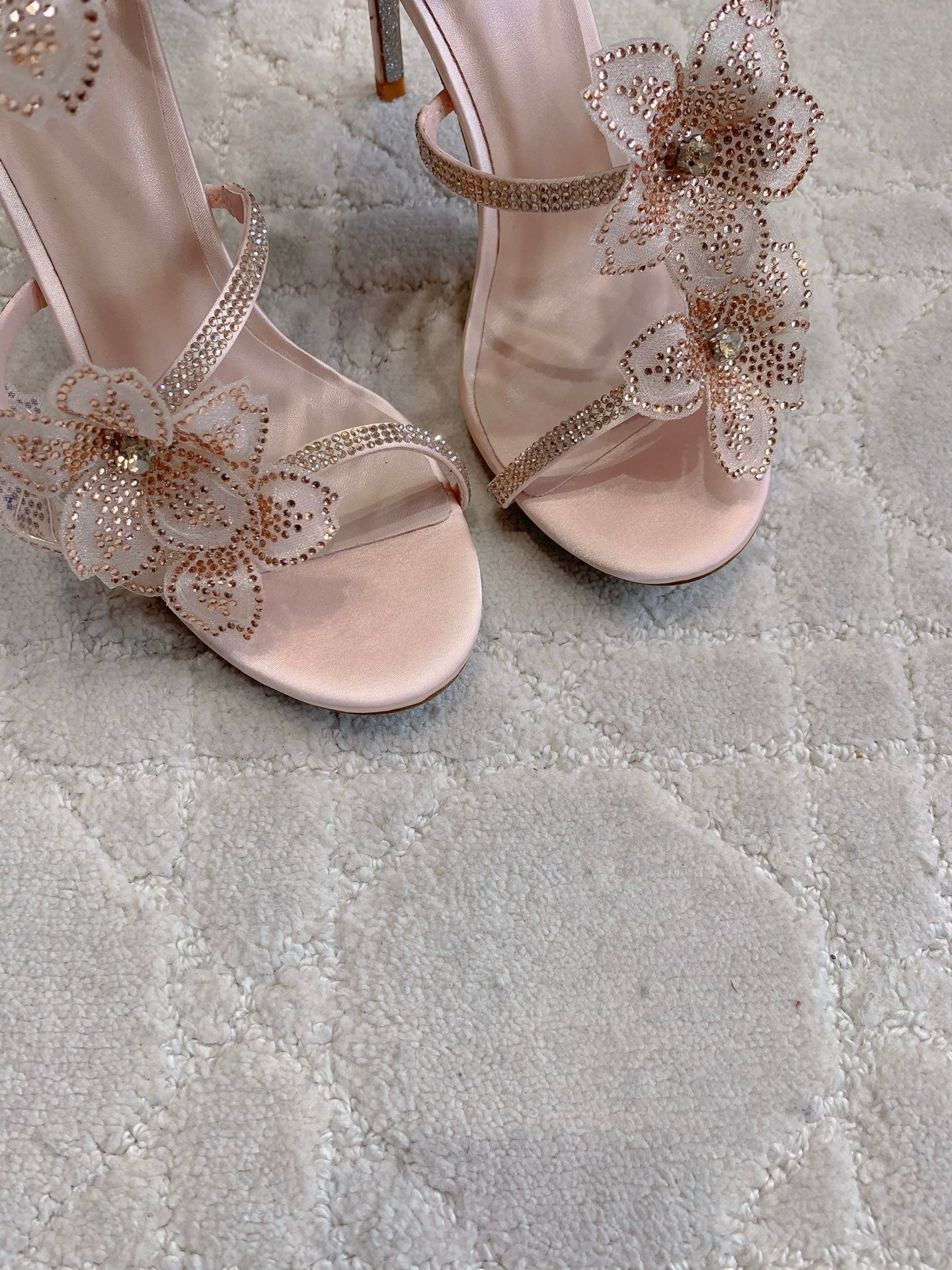 RC Flower Sandals Pink Nude Sheepskin Rhinestones 328466