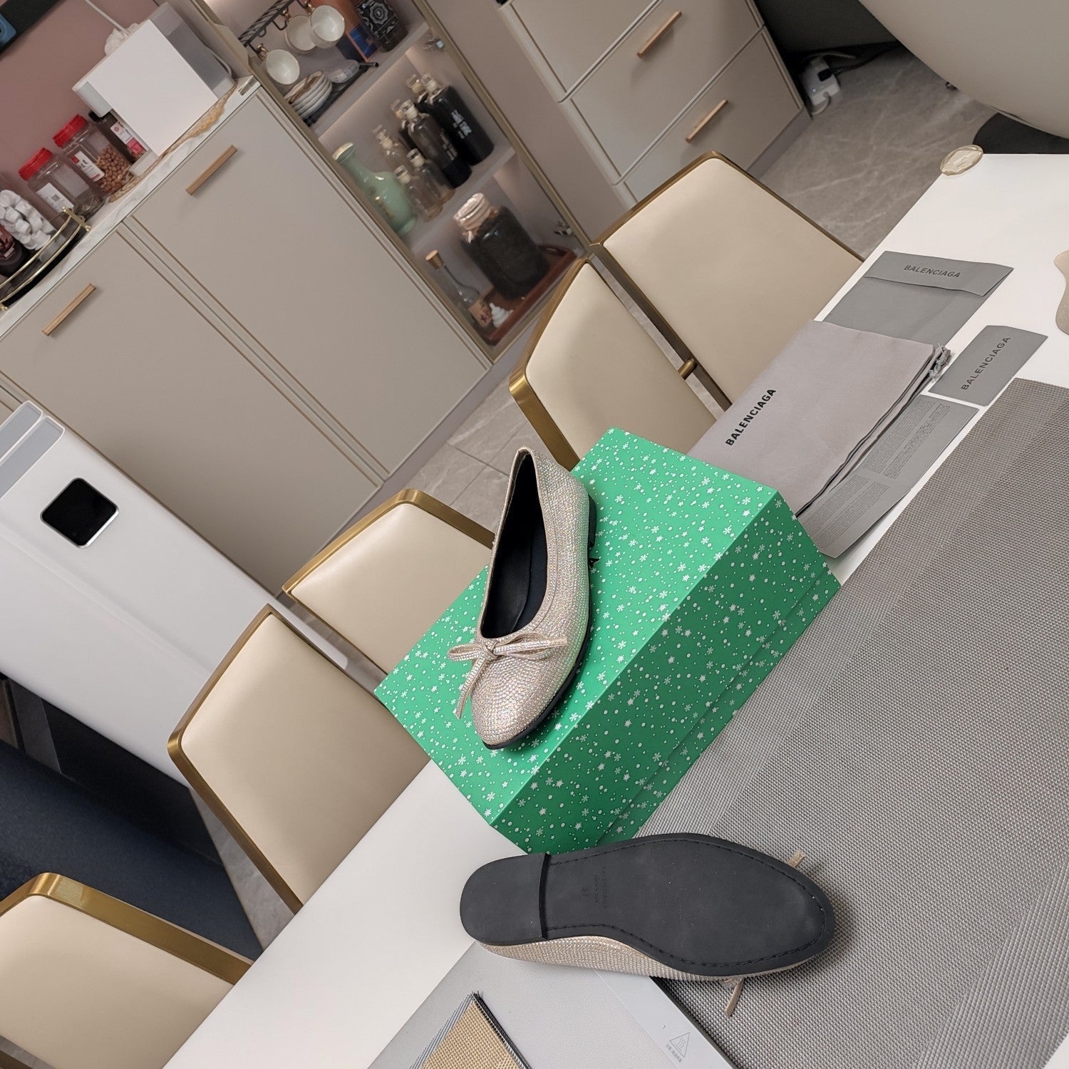 RHINESTONE BALLET FLATS WITH BOW IN BEIGE SHEEPSKIN