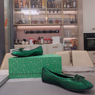 RHINESTONE BALLET FLATS WITH BOW IN FUN GREEN SHEEPSKIN