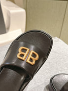 RISE SANDALS IN BLACK SHINY LAMBSKIN GOLD BUCKLE