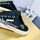 SNEAKER MULES IN BLACK CANVAS GRAFFITI LOGO
