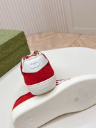 SNEAKER WITH INTERLOCKING G IN CHERRY RED SUEDE AND MESH